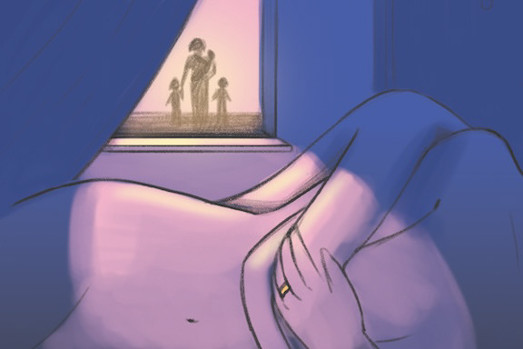 For the L.A. Times Affairs Column, about a woman who gets involved with a married man. Sketches shown below.