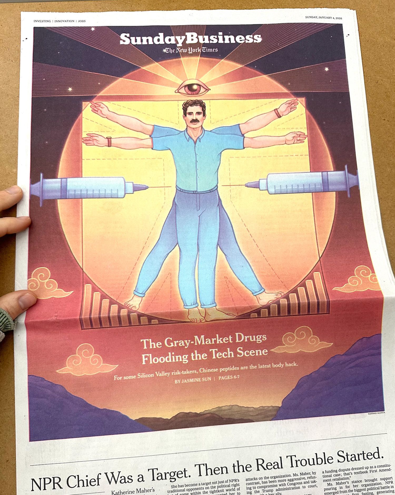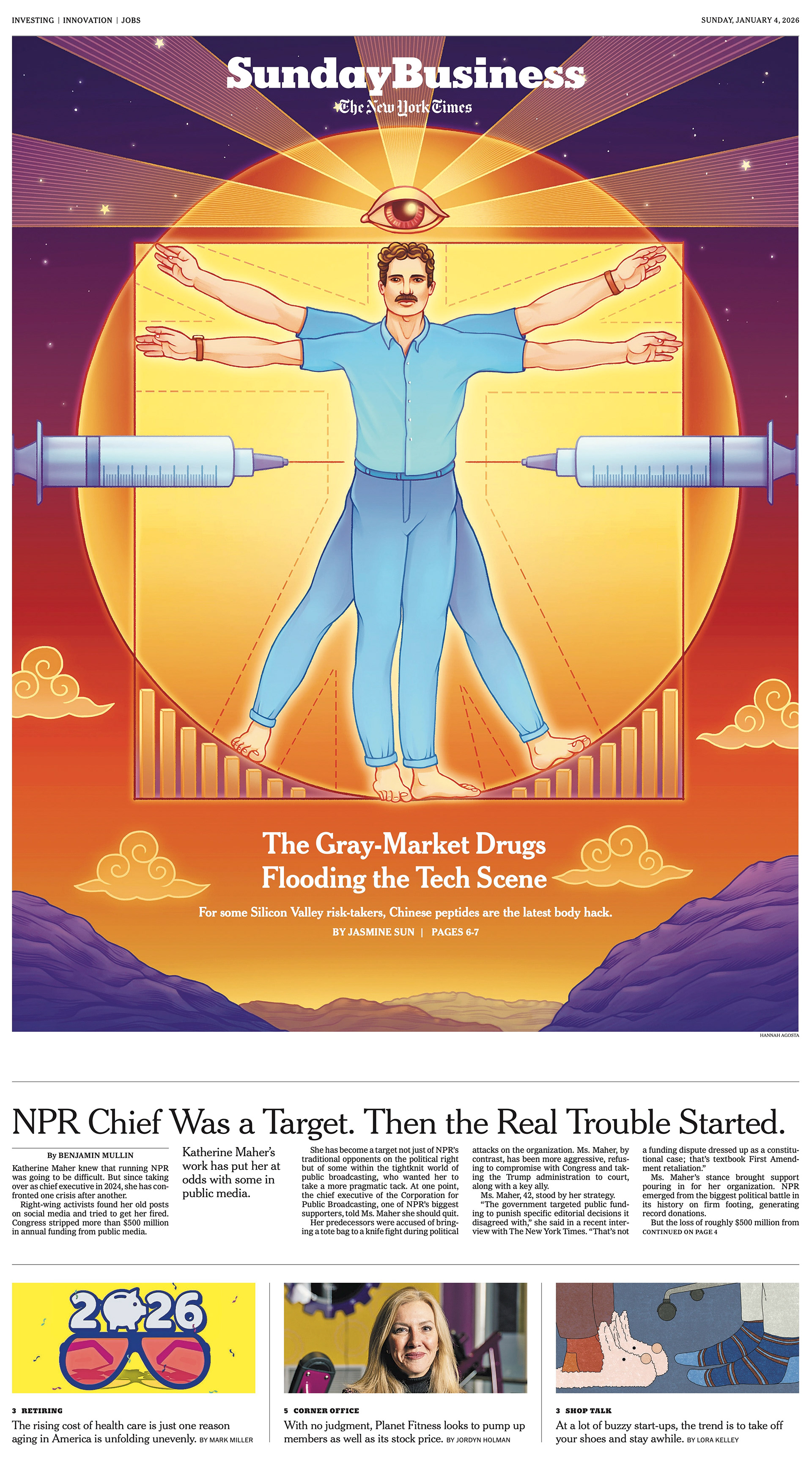 For the January 4th, 2026 New York Times cover of the business section, about the tech industry's obsession with peptides to optimize and enhance performance.